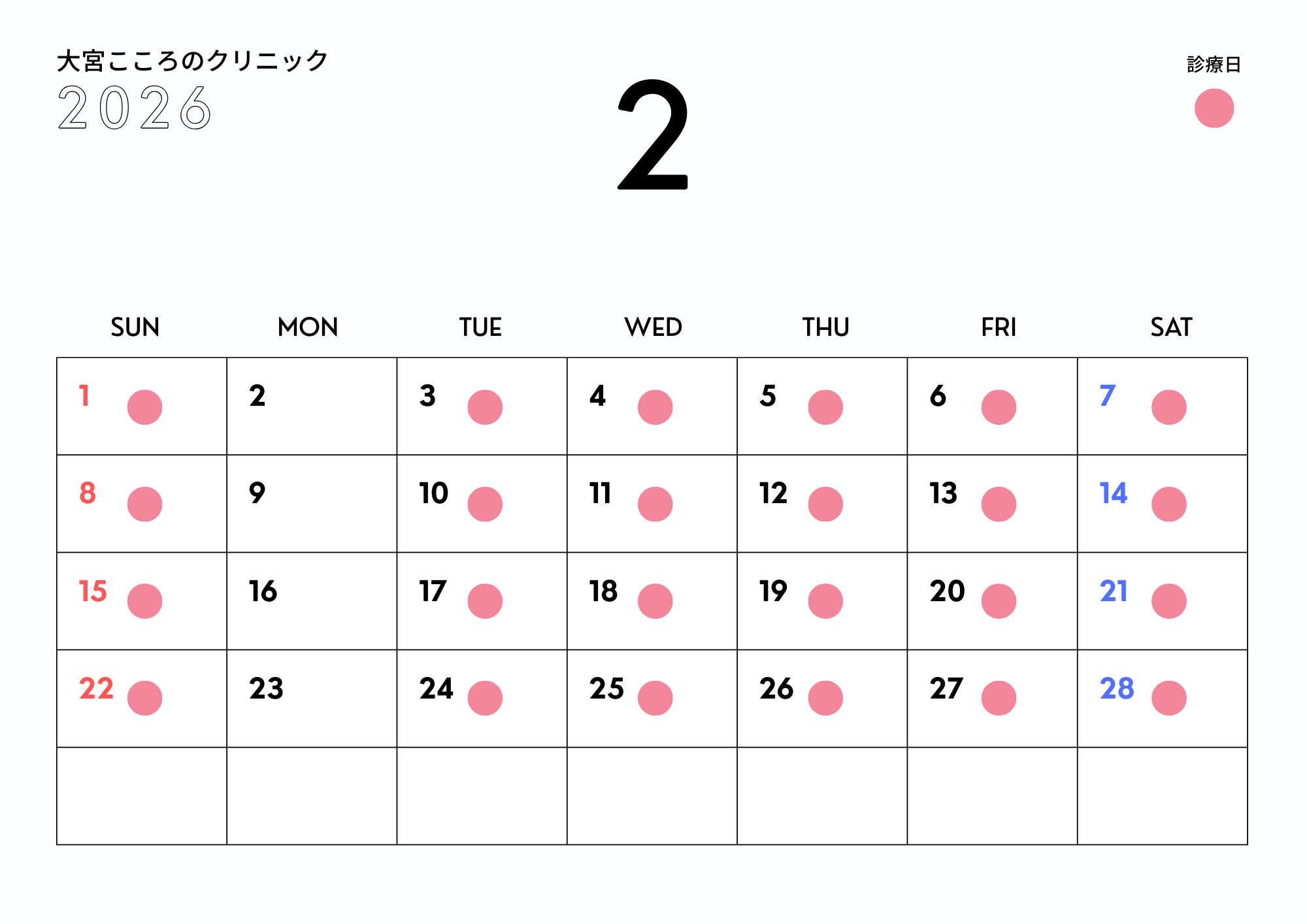 2026年2月の診療日について、ご案内申し上げます。